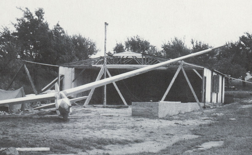 Damit die Flugzeuge nicht immer wieder vor dem Flugbetrieb auf- und nach dem Flugbetrieb abgerüstet werden mussten, bauten die ELV-Mitglieder mit tatkräftiger Unterstützung lokaler Handwerker die erste Segelflughalle. Sie wird auch heute noch genutzt.